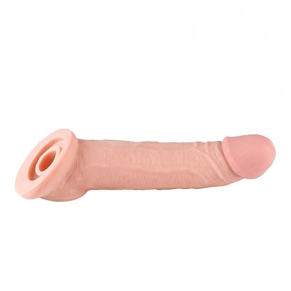 A capa peniana é feita em borracha ultra macia e flexível, com glande definida e textura realística de veias salientes ao longo do corpo, proporcionando maior sensação de prazer durante a penetração. Atenção: esta capa não substitui o preservativo.
